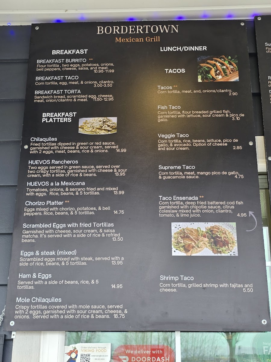 Eggs mixed with chorizo, potatoes, & bell pepper. Rice, beans, & 5 tortillas.